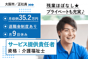 ≪大阪市/サービス提供責任者(介護福祉士)/正社員≫月収例32.0万円◆月9日休み◆退職金制度あり◆残業ほぼなし◆社内研修制度◆サービス付き高齢者向け住宅でのお仕事です☆(osa)
