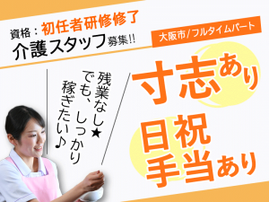≪大阪市/初任者研修修了/フルタイムパート≫◆寸志あり♪日祝手当あり♪夜勤手当充実♪時給例1,280円~◎駅徒歩3分◎資格取得支援あり◆サービス付き高齢者向け住宅でのお仕事です☆