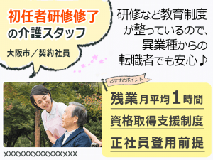 ≪大阪市/初任者研修修了/契約社員≫◆6カ月後に正社員登用前提◎資格取得支援制度◎月収例25.5万円◎駅徒歩3分◎賞与2.0ヶ月分★サービス付き高齢者住宅でのお仕事です☆(osa)