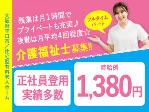 ≪守口市/介護福祉士/フルタイムパート≫正社員登用実績多数◆残業ほぼなし◆時給例1,380円◆住宅型有料老人ホームでのお仕事です☆(kyo)