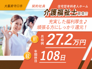 ≪守口市/介護福祉士/契約社員≫月収例27.2万円◆年間休日108日◆社内研修制度◆住宅型有料老人ホームでのお仕事です☆(osa)