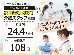 ≪守口市/実務者研修修了/正社員≫月収例26.2万円◆年間休日108日◆退職金制度あり◆住宅型有料老人ホームでのお仕事です☆(kyo)