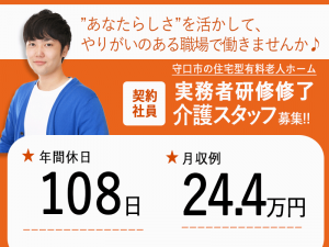 ≪守口市/実務者研修修了/契約社員≫月収例26.2万円◆年間休日108日◆退職金制度あり◆住宅型有料老人ホームでのお仕事です☆(osa)