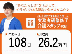 ≪守口市/実務者研修修了/契約社員≫月収例26.2万円◆年間休日108日◆退職金制度あり◆住宅型有料老人ホームでのお仕事です☆(osa)