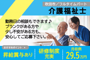 ≪吹田市/介護福祉士/フルタイムパート≫★時給例1,380円☆昇給賞与あり☆勤務日相談可★住宅型有料老人ホームでのお仕事です☆