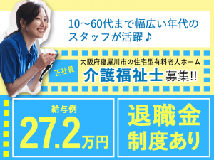 ≪寝屋川市/介護福祉士/正社員≫◆月収例27.2万円◇昇給賞与あり◇退職金制度あり◆住宅型老人ホームでのお仕事です☆(osa)
