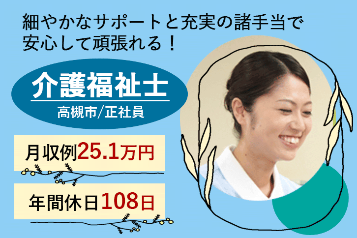 ≪高槻市/介護福祉士/正社員≫◆月収例27.2万円◇年間休日108日◇賞与あり◆住宅型老人ホームでのお仕事です☆(osa)