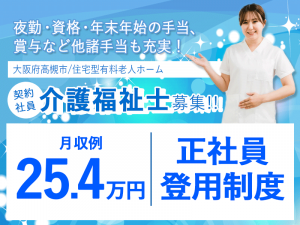 ≪高槻市/介護福祉士/契約社員≫★正社員登用制度◎月収例27.2万円◎年間休日108日★住宅型有料老人ホームでのお仕事です☆(osa)