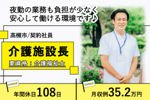 ≪高槻市/施設長(介護福祉士)/契約社員≫★月収例35.2万円◎賞与あり◎年間休日108日★住宅型老人ホームでのお仕事です☆(osa)