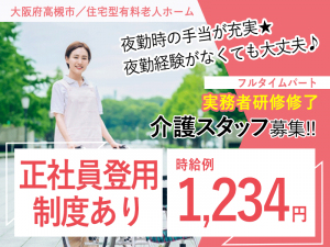≪高槻市/実務者研修修了/フルタイムパート≫★正社員登用制度◎時給例1,330円☆夜勤手当充実★住宅型有料老人ホームでのお仕事です☆