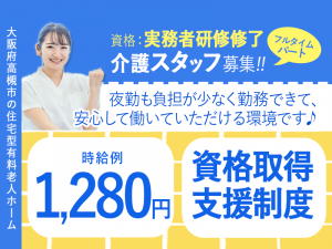 ≪高槻市/初任者研修修了/フルタイムパート≫★時給例1,280円◎資格取得支援制度◎年間休日108日★住宅型有料老人ホームでのお仕事です☆