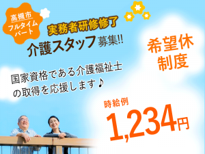 ≪高槻市/実務者研修修了/フルタイムパート≫★時給例1,330円◎希望休制度◎正社員登用制度★サービス付き高齢者向け住宅でのお仕事です☆