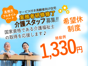 ≪高槻市/実務者研修修了/フルタイムパート≫★時給例1,330円◎希望休制度◎正社員登用制度★サービス付き高齢者向け住宅でのお仕事です☆