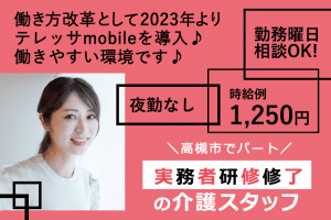 ≪高槻市/実務者研修修了/パート≫★夜勤なし◎時給例1,330円◎勤務曜日相談可★サービス付き高齢者向け住宅でのお仕事です☆