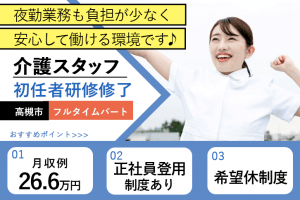 ≪高槻市/初任者研修修了/フルタイムパート≫★正社員登用制度◎時給例1,280円◎希望休制度★サービス付き高齢者向け住宅でのお仕事です☆