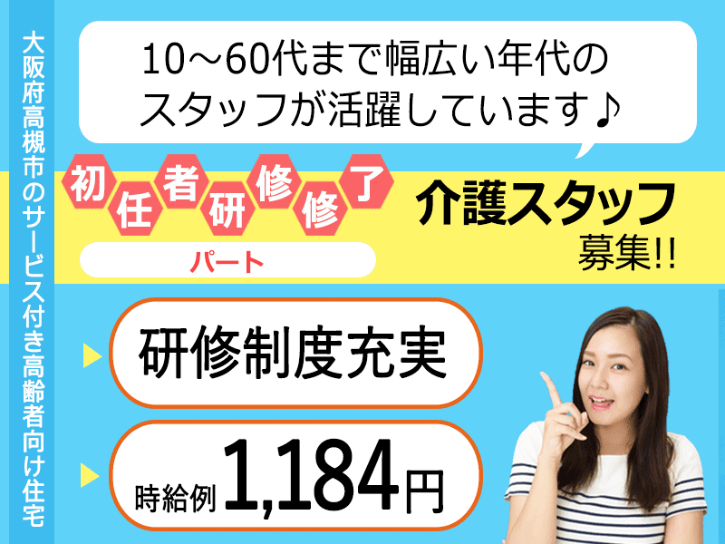 ≪高槻市/初任者研修修了/パート≫★研修制度充実◎時給例1,280円◎夜勤なし★サービス付き高齢者向け住宅でのお仕事です☆