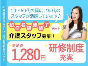 ≪高槻市/初任者研修修了/パート≫★研修制度充実◎時給例1,280円◎夜勤なし★サービス付き高齢者向け住宅でのお仕事です☆
