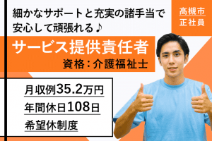 ≪高槻市/サービス提供責任者(介護福祉士)/正社員≫◆管理職は月収例32.0万円~◎賞与昇給あり◎退職金制度あり◎通勤手当上限なし◆有料老人ホームでのお仕事です☆(osa)