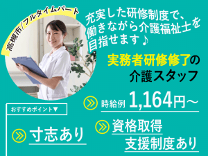≪高槻市/実務者研修修了/フルタイムパート≫◆寸志あり◆時給例1,330円~◎資格取得支援制度あり◎夜勤手当充実◆住宅型有料老人ホーム でのお仕事です☆