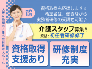 ≪高槻市/初任者研修修了/契約社員≫★資格取得支援♪研修制度充実♪月給例25.5万円★住宅型有料老人ホームでのお仕事です☆(osa)