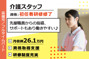 ≪高槻市/初任者研修修了/フルタイムパート≫★時給例1,280円~♪資格取得支援あり♪研修制度充実♪昇給あり★住宅型有料老人ホームでのお仕事です☆