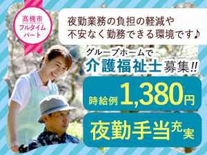 ≪高槻市/介護福祉士/フルタイムパート≫★☆時給例1,380円☆夜勤手当充実♪残業なし♪☆★グループホームでのお仕事です☆