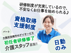 ≪高槻市/初任者研修修了/パート≫★日勤のみ◎資格取得制度◎時給例1,280円★デイサービスでのお仕事です☆
