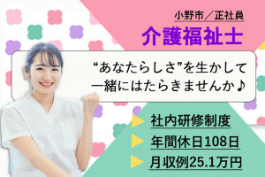 ≪小野市/介護福祉士/正社員≫★月収例27.2万円◆賞与2.0ヶ月分◆残業少なめ◆希望休制度◆社内研修制度★介護付有料老人ホームでのお仕事です☆