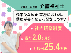 ≪小野市/介護福祉士/正社員≫★月収例27.2万円◆賞与2.0ヶ月分◆残業少なめ◆希望休制度◆社内研修制度★介護付有料老人ホームでのお仕事です☆