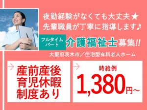 ≪茨木市/介護福祉士/フルタイムパート≫★2023年7月開業◇時給例1,380円~◇年間休日108日★住宅型有料老人ホームでのお仕事です☆