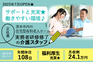 ≪茨木市/実務者研修修了/正社員≫◆年間休日125日◎2023年7月開業◎月収例26.2万円◆住宅型有料老人ホームでのお仕事です☆(osa)