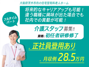 ≪茨木市/初任者研修修了/フルタイムパート≫★時給例1,280円~◇正社員登用あり◇研修制度充実★住宅型有料老人ホームでのお仕事です☆