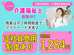 ≪高槻市/介護福祉士/パート≫◆時給例1,380円◇希望休制度◇正社員登用制度◆小規模多機能居宅でのお仕事です☆(osa)