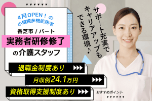 ≪高槻市/実務者研修修了/正社員≫◆退職金制度あり◇研修制度充実◇月収例26.2万円◆小規模多機能居宅でのお仕事です☆(osa)