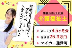 ≪和歌山市/介護福祉士/正社員≫★賞与4.5ヶ月分◎月収例28.7万円◎残業ほぼ無し◎マイカー通勤可★特養でのお仕事です☆(wak)