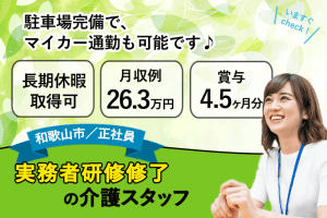 ≪和歌山市/実務者研修修了/正社員≫★月収例27.6万円◎長期休暇取得可◎賞与4.5ヶ月分★特養でのお仕事です☆(wak)