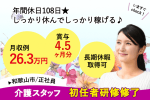 ≪和歌山市/初任者研修修了/正社員≫★賞与4.5ヶ月分◎月収例27.6万円◎長期休暇取得可◎マイカー通勤可★特養でのお仕事です☆(wak)
