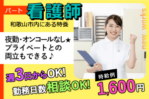 ≪和歌山市/看護師/パート≫★週3日~OK◎時給例1,600円◎夜勤なし◎★特養でのお仕事です☆(wak)