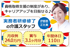 ≪伊都郡/実務者研修修了/正社員≫★月収例24.0万円◇賞与3.1ヶ月分◇年間休日110日◇資格取得支援制度★特別養護老人ホームでのお仕事です☆(wak)