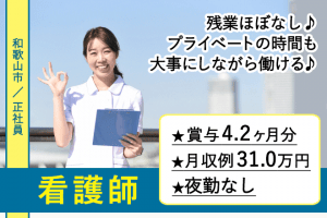 ≪和歌山市/看護師/正社員≫★賞与4.2ヶ月分◆月収例31.0万円◆夜勤なし◆残業少ない★特別養護老人ホームでのお仕事です☆(wak)