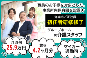 ≪海南市/初任者研修修了/正社員≫★月収例25.9万円◆手当充実◆賞与4.2ヶ月分◆マイカー通勤可★グループホームでのお仕事です☆(wak)