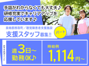 ≪泉南郡熊取町/支援スタッフ/パート≫手話が身につく★週3日~夜勤のない勤務♪聴覚障害者の支援施設でのお仕事です☆