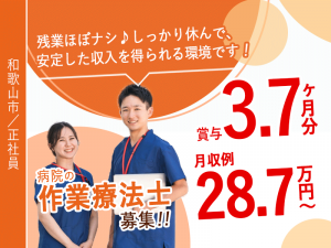 ≪和歌山市/作業療法士/正社員≫◆月収例28.7万円~◎賞与3.7ヶ月分◎残業ほぼなし&日勤のみ◎有給休暇の消化率90%以上◎OJTありで未経験も大歓迎◆病院でのお仕事です☆(wak)