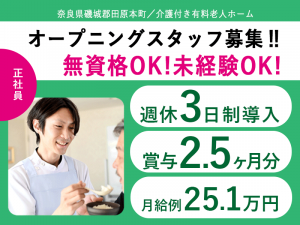 ≪磯城郡/無資格・未経験OK介護士/正社員≫★給与改定!2025年6月~さらに高待遇に!月収例26.7万円♪年間休日156日★介護付有料老人ホームでのお仕事です☆(kyo)