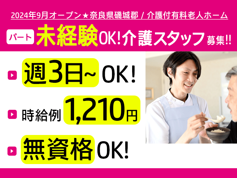 ≪磯城郡/無資格介護士/パート≫★☆2025年6月、給与大幅改定!/☆★処遇改善臨時手当もあり♪無資格OK♪資格取得支援♪研修充実♪2024年9月オープン♪週3日~OK★介護付有料老人ホームでのお仕事です☆(kyo)