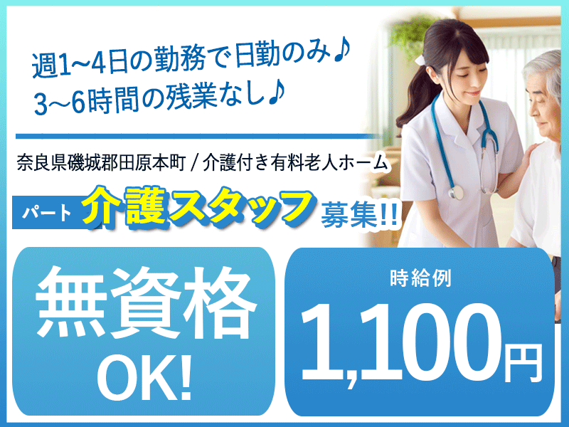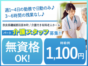 ≪磯城郡/無資格OKの介護士/パート≫★2025年6月、待遇を全面見直し★1日3~6時間で勤務時間が選べる◆2024年9月OPEN◆駅チカ◆週1~4日勤務OK◆介護付有料老人ホームでのお仕事です☆(kyo)