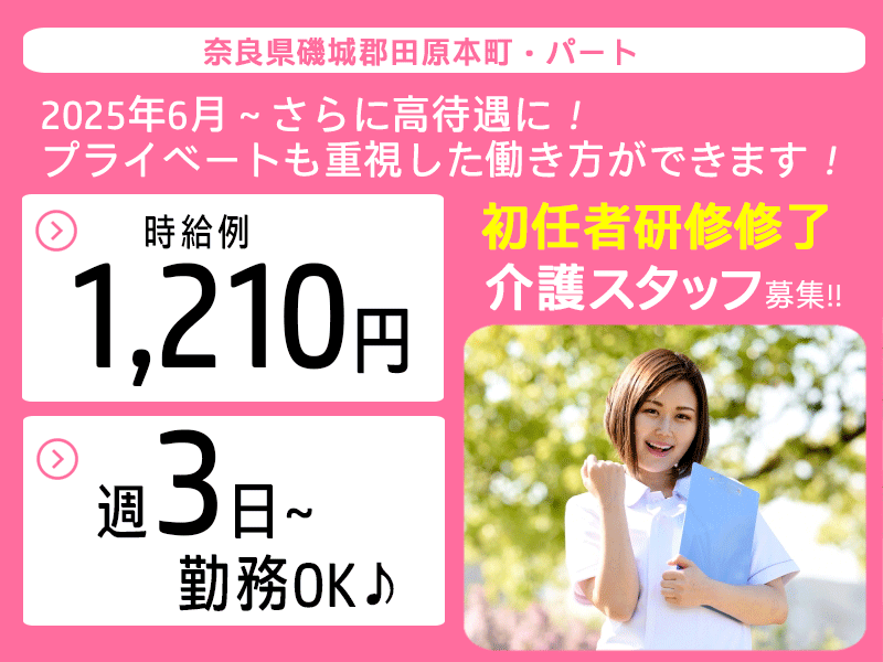 ≪磯城郡/初任者研修修了/パート≫◆給与改定◆2025年6月~さらに高待遇に!処遇改善臨時手当あり★週3日~OK★2024年9月オープン♪★介護付有料老人ホームでのお仕事です☆(kyo)
