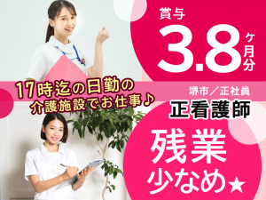 ≪堺市/正看護師/正社員≫★夜勤ナシ◎オンコールは有無が選べる◎月収例28.8万円◎残業少なめ◎賞与3.8ヶ月分◎託児施設あり★介護老人保健施設でのお仕事です☆(osa)