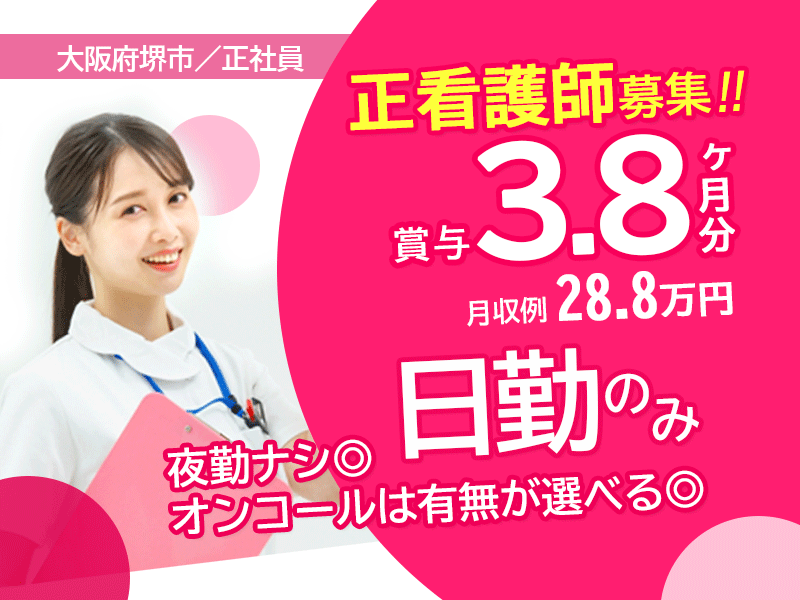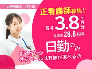 ≪堺市/正看護師/正社員≫★夜勤ナシ◎オンコールは有無が選べる◎月収例28.8万円◎残業少なめ◎賞与3.8ヶ月分◎託児施設あり★介護老人保健施設でのお仕事です☆(osa)