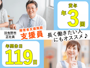 ≪羽曳野市/支援員/正社員≫賞与年3回◎年間休日111日◎月給例26万円◎住宅手当あり☆★障害者支援施設でのお仕事です☆(osa)